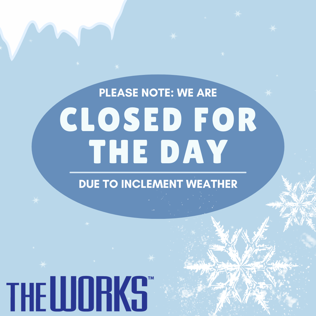 CLOSURE. Due to the weather, The Works will be closed for the remainder of the day!