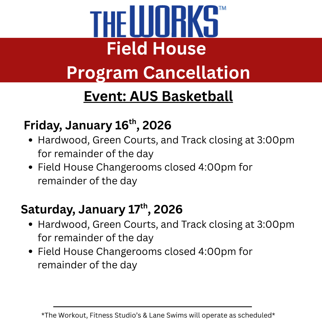 The Works includes the Aquarena (temporarily closed), Field House and other recreation facilities on Memorial University's St. John's Campus. The Works offer a variety of fitness, aquatic and recreation facilities and programs to the general public and the university community. Click here for more information.