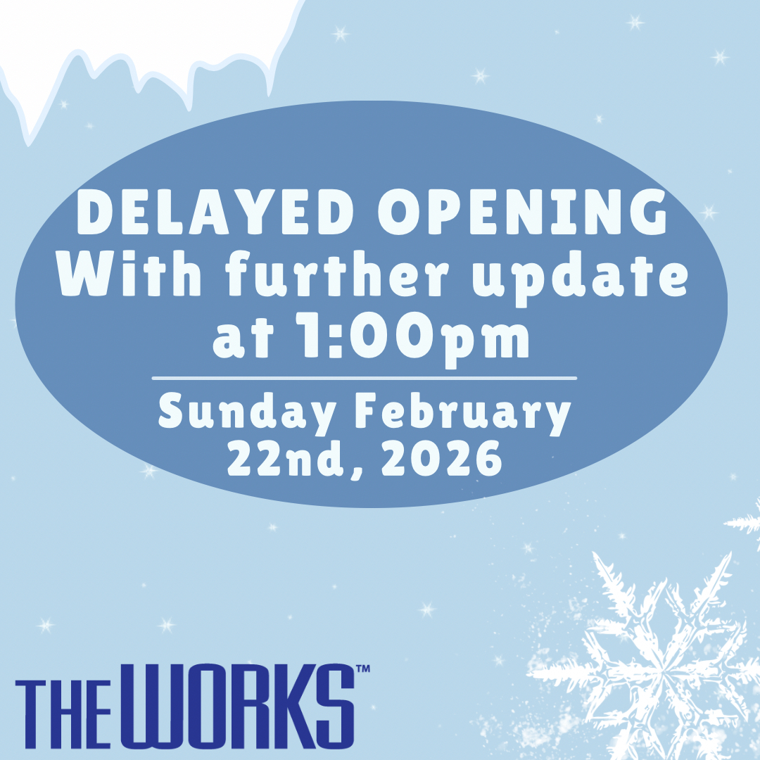 The Works will have a further delayed opening with and update at 1:00 pm.